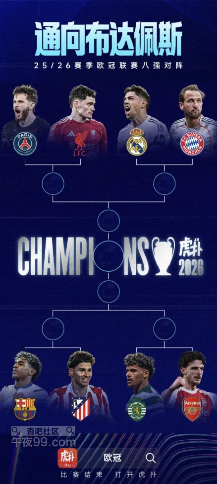 [|足球快报] 欧冠1/4决赛对阵:巴黎vs利物浦,皇马vs拜仁,巴萨vs马竞 |
